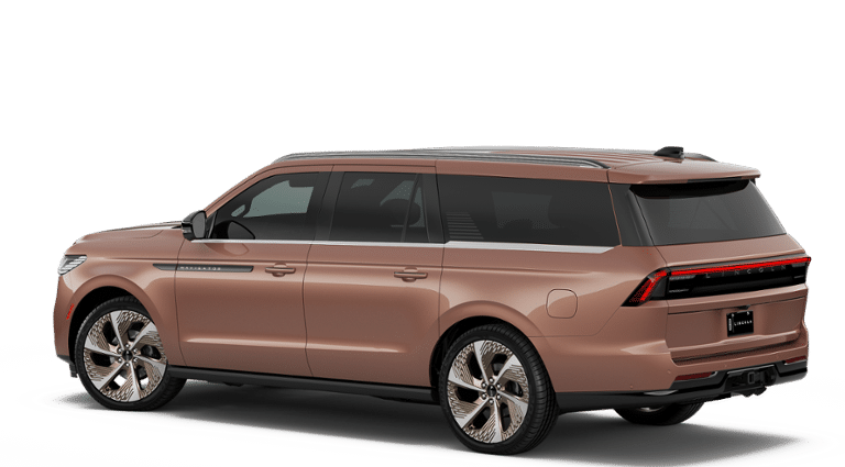 Sunrise Copper Metallic Pearlcoat 2026 Lincoln Navigator L Black Label Equipment Group 801A Black Label (Auto Heated/Ventilated Opulence Leather Captain's Chairs, BlueCruise Equipped (4-Years Included), Lincoln App, Lincoln Digital Experience, Radiant Copper Grille, Radio: Revel Ultima 3D Audio System, SiriusXM with 360L (3 Months Trial), Special Edition Radiant Copper Badge, and Wheels: 24 Radiant Copper Aluminum), Lincoln Connectivity Package (4-Years Included), Lincoln Security Package, 28 Speakers, 3rd row seats: split-bench, 4-Wheel Disc Brakes, ABS brakes, Adaptive suspension, Adjustable pedals, Air Conditioning, All-Weather Floor Liners with Front and Rear Carpet Floor Mats, Alloy wheels, AM/FM radio: SiriusXM with 360L, Apple CarPlay/Android Auto, Atmospheric Theme, Audio memory, Auto High-beam Headlights, Auto Start-Stop Technology, Auto tilt-away steering wheel, Auto-dimming door mirrors, Auto-dimming Rear-View mirror, Auto-leveling suspension, Automatic temperature control, Brake assist, Bumpers: body-color, Compass, Delay-off headlights, Driver door bin, Driver vanity mirror, Driver's Seat Mounted Armrest, Dual front impact airbags, Dual front side impact airbags, Electronic Stability Control, Emergency communication system: 911 Assist, Enlighten Theme, Exterior Parking Camera Rear, Four wheel independent suspension, Front anti-roll bar, Front Bucket Seats, Front dual zone A/C, Front reading lights, Fully automatic headlights, Garage door transmitter, Head restraints memory, Heated door mirrors, Heated front seats, Heated rear seats, Heated steering wheel, HVAC memory, Illuminated entry, Leather steering wheel, Low tire pressure warning, Memory seat, Navigation system: Connected Navigation (1-year trial), Occupant sensing airbag, Outside temperature display, Overhead airbag, Overhead console, Panic alarm, Passenger door bin, Passenger seat mounted armrest, Passenger vanity mirror, Pedal memory, Power adjustable front head restraints, Power adjustable rear head restraints, Power door mirrors, Power driver seat, Power moonroof: Panoramic Vista Roof, Power passenger seat, Power steering, Power windows, Radio data system, Rain sensing wipers, Rear air conditioning, Rear anti-roll bar, Rear audio controls, Rear reading lights, Rear seat center armrest, Rear window defroster, Rear window wiper, Reclining 3rd row seat, Remote keyless entry, Security system, Speed control, Speed-sensing steering, Speed-Sensitive Wipers, Split folding rear seat, Spoiler, Steering wheel memory, Steering wheel mounted audio controls, Tachometer, Telescoping steering wheel, Tilt steering wheel, Traction control, Trip computer, Turn signal indicator mirrors, Variably intermittent wipers, Ventilated front seats, Ventilated rear seats, and Wheels: 22 High-Gloss Ebony Aluminum. All books & keys (when applicable), Mutli Function Steering Wheel Controls, iphone / Droid Navigation Compatible.