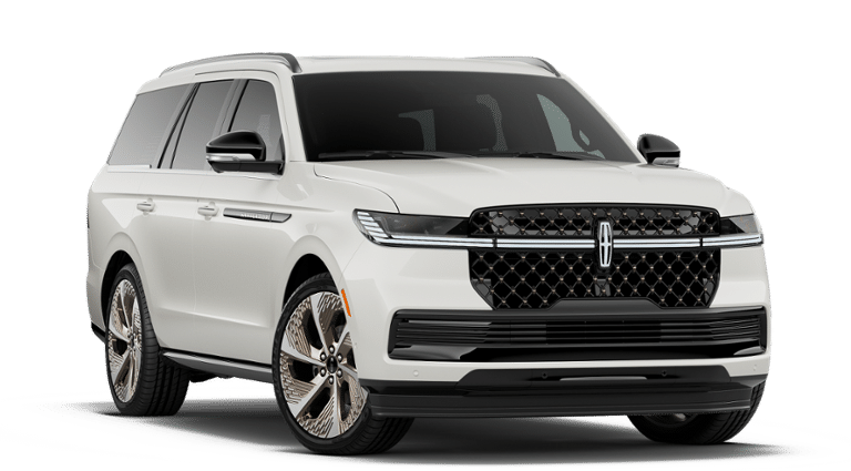 White Metallic 2026 Lincoln Navigator Black Label Equipment Group 801A Black Label (Auto Heated/Ventilated Opulence Leather Captain's Chairs, BlueCruise Equipped (4-Years Included), Lincoln App, Lincoln Digital Experience, Radiant Copper Grille, Radio: Revel Ultima 3D Audio System, SiriusXM with 360L (3 Months Trial), Special Edition Radiant Copper Badge, and Wheels: 24 Radiant Copper Aluminum), Lincoln Connectivity Package (4-Years Included), Lincoln Security Package, 28 Speakers, 3rd row seats: split-bench, 4-Wheel Disc Brakes, ABS brakes, Adaptive suspension, Adjustable pedals, Air Conditioning, Alloy wheels, AM/FM radio: SiriusXM with 360L, Apple CarPlay/Android Auto, Atmospheric Theme, Audio memory, Auto High-beam Headlights, Auto Start-Stop Technology, Auto tilt-away steering wheel, Auto-dimming door mirrors, Auto-dimming Rear-View mirror, Auto-leveling suspension, Automatic temperature control, Brake assist, Bumpers: body-color, Compass, Delay-off headlights, Driver door bin, Driver vanity mirror, Driver's Seat Mounted Armrest, Dual front impact airbags, Dual front side impact airbags, Electronic Stability Control, Emergency communication system: 911 Assist, Enlighten Theme, Exterior Parking Camera Rear, Four wheel independent suspension, Front anti-roll bar, Front Bucket Seats, Front dual zone A/C, Front reading lights, Fully automatic headlights, Garage door transmitter, Head restraints memory, Heated door mirrors, Heated front seats, Heated rear seats, Heated steering wheel, HVAC memory, Illuminated entry, Leather steering wheel, Low tire pressure warning, Memory seat, Navigation system: Connected Navigation (1-year trial), Occupant sensing airbag, Outside temperature display, Overhead airbag, Overhead console, Panic alarm, Passenger door bin, Passenger seat mounted armrest, Passenger vanity mirror, Pedal memory, Power adjustable front head restraints, Power adjustable rear head restraints, Power door mirrors, Power driver seat, Power moonroof: Panoramic Vista Roof, Power passenger seat, Power steering, Power windows, Radio data system, Rain sensing wipers, Rear air conditioning, Rear anti-roll bar, Rear audio controls, Rear reading lights, Rear seat center armrest, Rear window defroster, Rear window wiper, Reclining 3rd row seat, Remote keyless entry, Security system, Speed control, Speed-sensing steering, Speed-Sensitive Wipers, Split folding rear seat, Spoiler, Steering wheel memory, Steering wheel mounted audio controls, Tachometer, Telescoping steering wheel, Tilt steering wheel, Traction control, Trip computer, Turn signal indicator mirrors, Variably intermittent wipers, Ventilated front seats, Ventilated rear seats, and Wheels: 22 High-Gloss Ebony Aluminum. All books & keys (when applicable), Mutli Function Steering Wheel Controls, iphone / Droid Navigation Compatible.