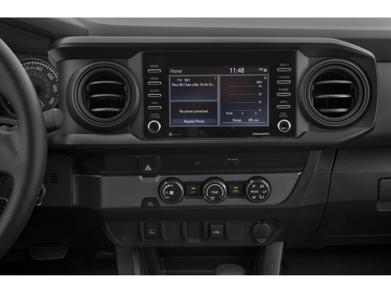 - Radio: Sistema de audio -incluye: 6 altavoces, pantalla táctil de 7 plg, compatible con Android Auto, Apple CarPlay y Amazon Alexa, compatibilidad con teléfono a manos libres, reconocimiento de voz avanzado y transmisión de música mediante tecnología inalámbrica Bluetooth, SiriusXM con prueba de 3 meses All Access y Servicios Conectados (Safety Connect con prueba de 1 año y Wi-Fi Connect con hasta 2 GB dentro de la prueba de 3 meses), consulte toyota.com/audio-multimedia para más detalles