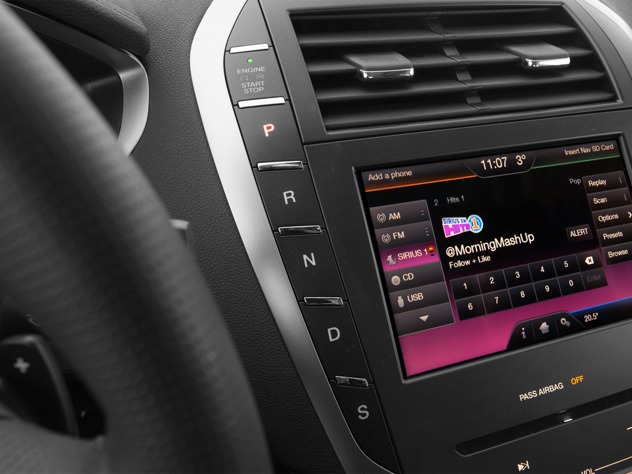 - Radio: Sistema de audio Lincoln Premium con CD singular/MP3 -incluye: 11 altavoces, enchufe de entrada de audio y radio satélite SIRIUS con suscripción prepagada de 6 meses (48 estados contiguos), servicio no disponible en Alaska y Hawaii