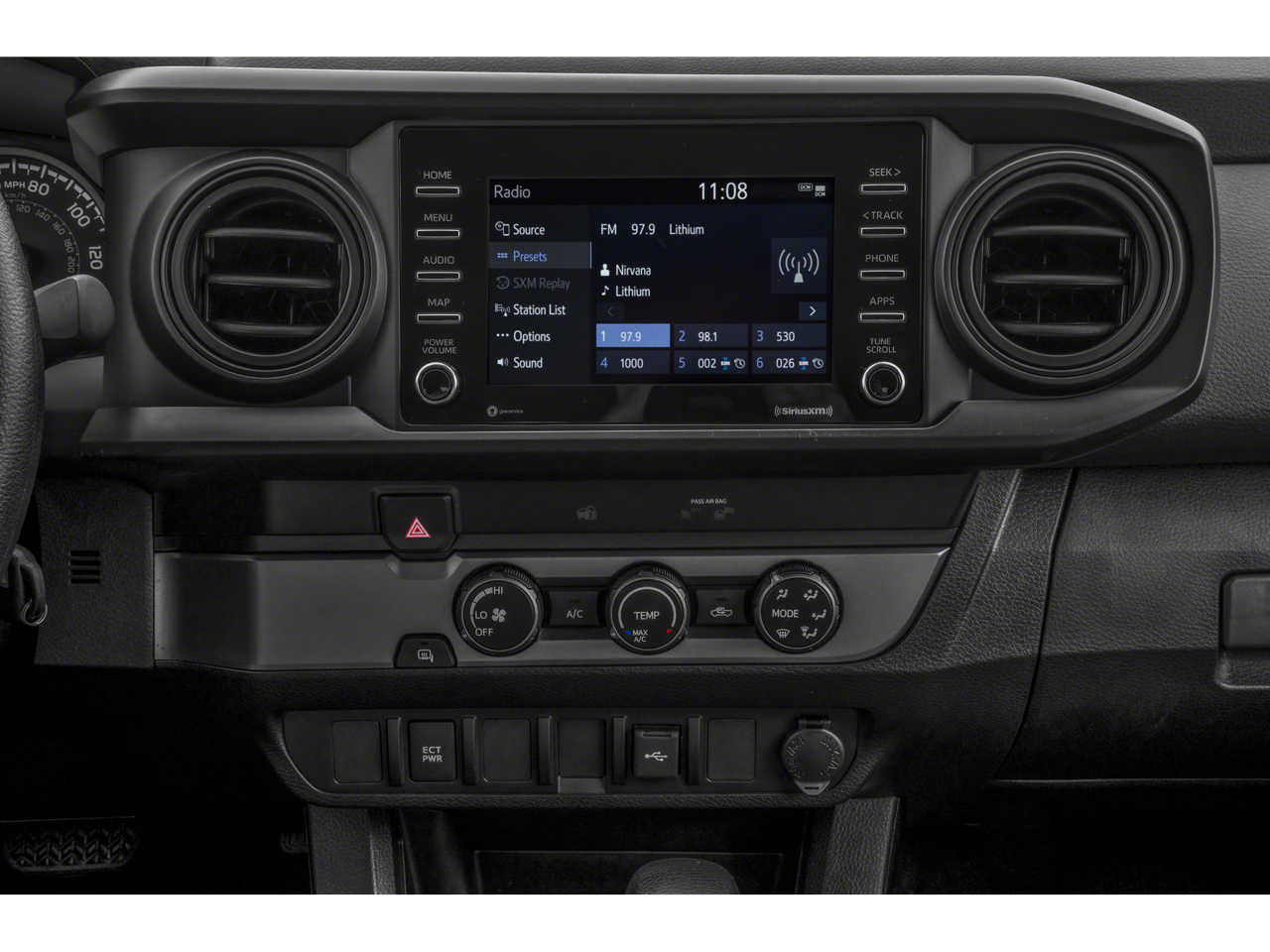 - Radio: AM/FM estéreo -incluye: 6 altavoces, pantalla táctil de 7 plg, puerto auxiliar, entrada USB para multimedios, Siri Eyes Free, reconocimiento avanzado de voz, compatibilidad con teléfono a manos libres mediante Bluetooth, acceso a agenda de contactos, Apple CarPlay, Android Auto, Alexa de Amazon, SiriusXM y transmisión de música